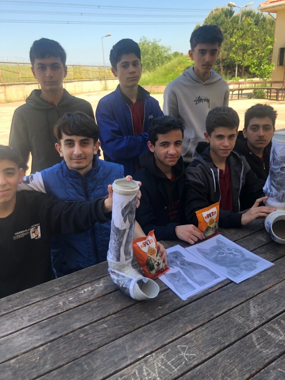 Murat ELÖNÜ öğretmenimizin danışmanlığında Sosyal Sorumluluk ve Toplum Hizmeti Projesi kapsamında 9L sınıfı kedi - köpek mama kabı yaparak okul bahçesine yerleştirildi.
