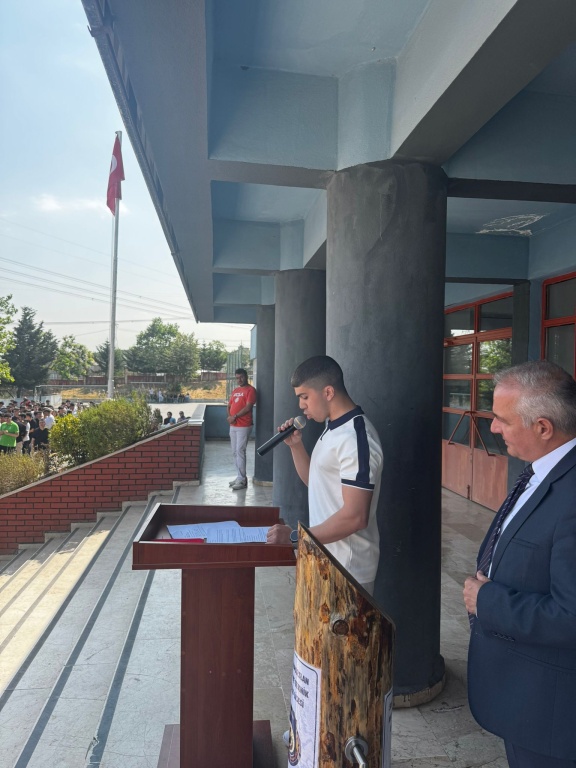 2024-2025 eğitim - öğretim yılının sonuna geldik. Törenimiz okul müdürümüz Ercüment Cüneyt Kaya'nın konuşması ile başladı. Ardından okul birincisi öğrencimiz Bilişim Teknolojileri bölümü 12A sınıfından Kosai Almasri okul kütüğüne ismini çakıp konuşmasını yaptı.Öğrencimizi ve ailesini tebrik ediyor başarılarının devamını diliyoruz. Törenimizde çeşitli sebeplerle başarı gösteren öğrencilerimiz hediyelerle ödüllendirildi.Okulumuzdan ayrılan öğretmenlerimize müdürümüz tarafından plaketleri takdim edildi ve okulumuza hizmetleri için teşekkür edildi. Bütün öğrencilerimiz karnelerini aldıktan sonra törenimiz sona erdi.
